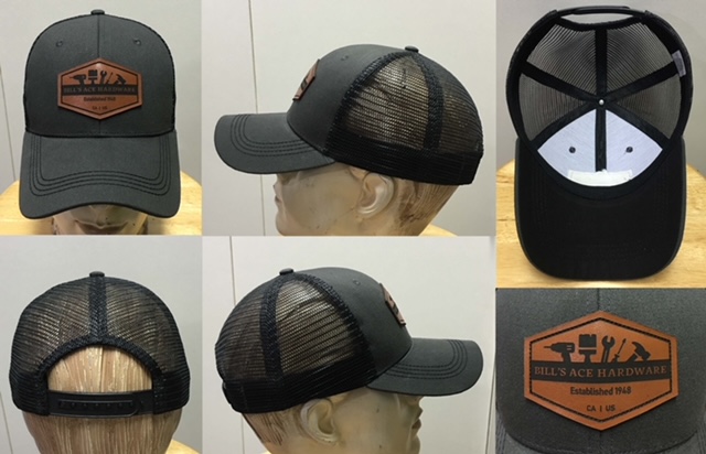 Trucker, flat bills, stretch fits, corporate styles and more. Your Logo Laser Etched on the leather.